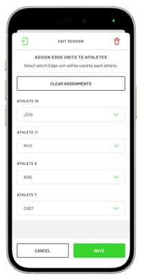 Reassigning EDGE units is best managed during session creation, where you can confirm active athletes and update assignments in one workflow. Using consistent naming conventions and syncing new hardware immediately will significantly reduce setup time and minimize errors.